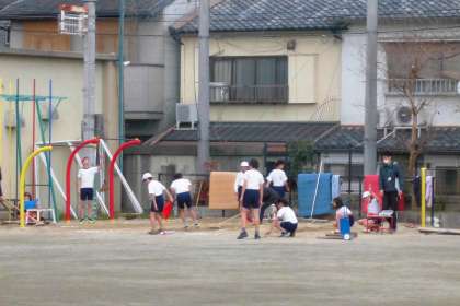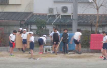 小雪がちらつく中,幅跳びの学習をしました。各自がそれぞれの役割を守って学習しました。踏切を強くすることを意識して遠くへ跳びました。