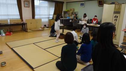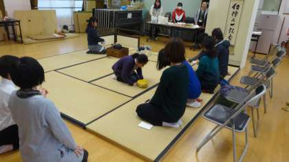 早春お茶会を開催しました。お家の方を招待して,これまでの稽古の成果を披露しました。みんな少し緊張しながらも,これまでの稽古を思い出しながら,お点前を披露しいていました。