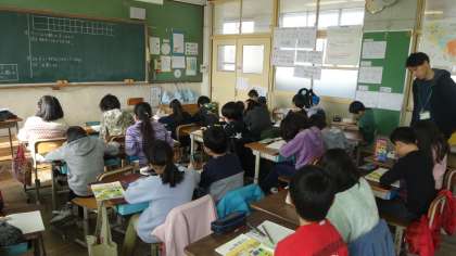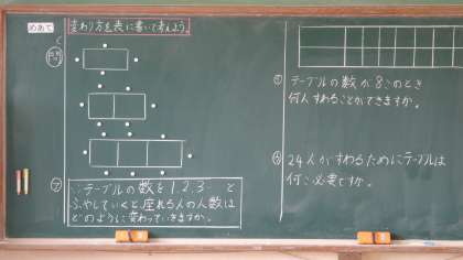 1・2組ともに算数の学習です。変わり方を調べる中で,規則性を導き出して答えを求めていきます。どんなふうに答えを求めていけばいいのか,意見を出し合いながらみんなで考えていきました。