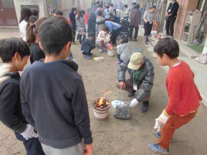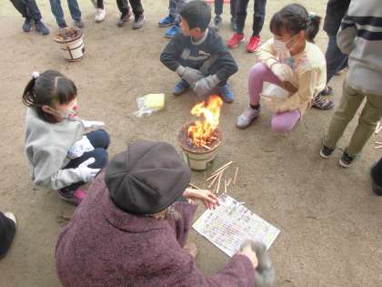3年生は社会科の学習で昔のくらしについて学習しています。その学習で七輪を使っておもちを焼く体験をしました。木炭に火をつけるのに思いの他苦労することを,体験を通して学ぶことができました。