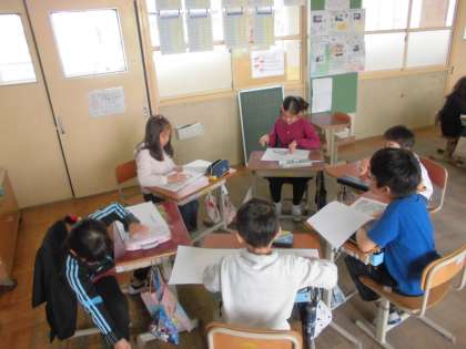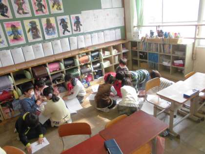 学習発表会に向けて取組が始まりました。学習発表会ではグループに分かれて音読劇を行います。各グループで分担するところを決めて音読の練習をしました。