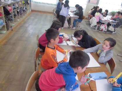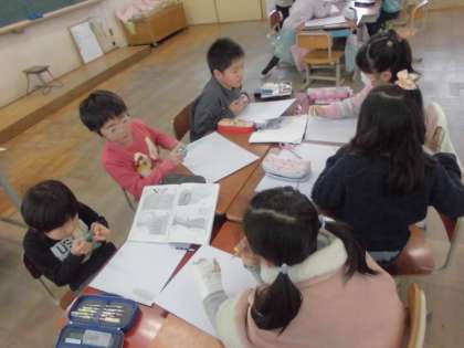 今月21日の学習発表会に向けて準備を進めています。音読発表会で使う道具を作りました。グループでどんなものが必要かを相談して作りました。