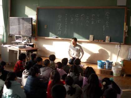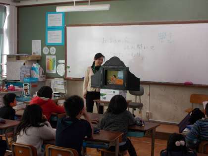 4年生の教室での読み聞かせの様子です。みんなお話を聞きいっていました。