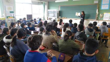 今日は3年生と5年生の教室で読み聞かせをしていただきました。5年生は,学年みんなが一つの教室に集まって,お話を聞かせていただきました。いつもありがとうございます。