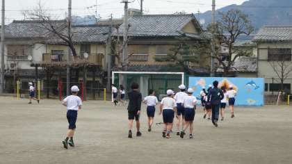 3月4日の持久走大会に向けて,体育でジョギングに取り組んでいます。本番を見据えての体力づくりです。それぞれのペースで頑張って走っていました。