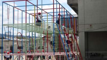 体育の時間,遊具の使い方を学習しています。総合遊具では待望の上まで上がることができました。でも安全にルールを守って遊ばないと,大怪我につながってしまいます。学習したことをしっかり理解して,自分の力に見合った遊び方ができるようにしたいです。