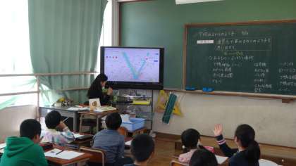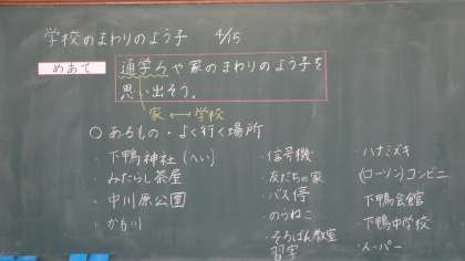 新しく社会科の学習が始まった3年生。まずは自分たちの校区を,改めて調べてみました。大型テレビに映し出された校区地図を見ながら,自分たちの校区がどんな様子か思い出しながら学習を進めていきました。