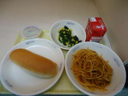 1日目は「スパゲティのミートソース煮・ほうれん草のソテー」で,「家で食べたことある。」「野菜も全部食べたよ。」「おいしい〜。」と言っていました。月曜日の「豚肉と野菜の煮つけ」は,しいたけの苦手な児童がいました。火曜日の「大豆と鶏肉のトマト煮」は,「お豆がおいしい。」と大豆もしっかり食べていました。