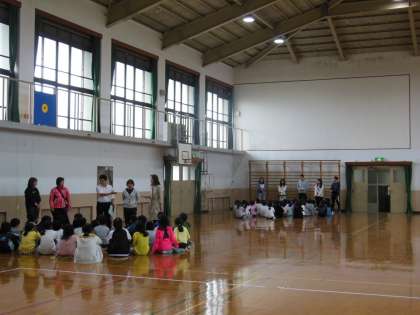 今年度の部活動開始式がありました。今年度行う部活動は,バレーボール部,バドミントン部,陸上部,茶道部です。それぞれ部活動の約束事などを確認しながら,練習の仕方について聞いていました。