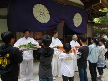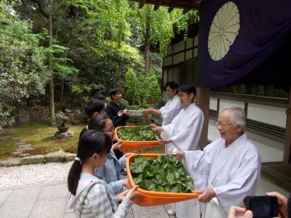 学校で育てたふたば葵を下鴨神社に奉納しました。12日の御蔭祭,そして15日の葵祭で使っていただきます。