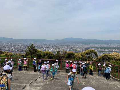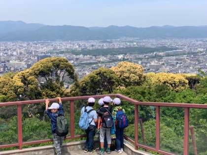 山頂からは京都市が見渡せて,とても気持ち良かったです。3年生の社会の学習では,京都市のことをこれから学習していきます。京都市の街の様子,イメージがつかめたかな。