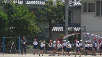 5年生のソフトボール投げの様子です。さすがに4年生よりも遠くまで投げています。自己記録は達成できたかな。