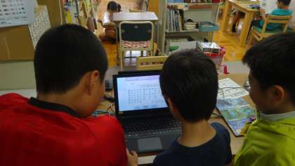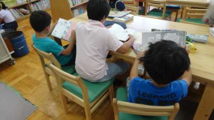 図書室での読書活動です。自分の好みの本を手に取って,思い思いに読んでいました。読んだ本については,読書ノートに記録をつけています。