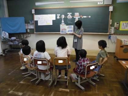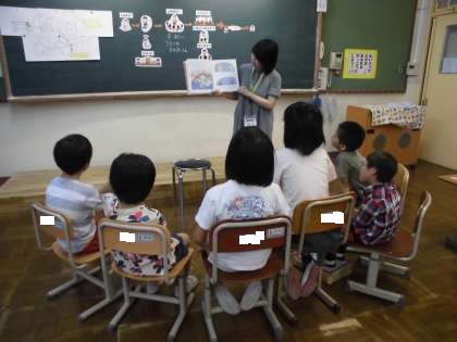 今日は,お話の会の方の「読み聞かせ」がありました。初めてのことなので,みんな一生懸命聞き入っていました。お話は,「あべこべさん」でした。