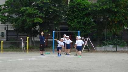 今日は3年生がスポーツテストのソフトボール投げに挑戦です。3年生にとっては少しソフトボールは大きいですが,目標を定めて一生懸命に投げていました。