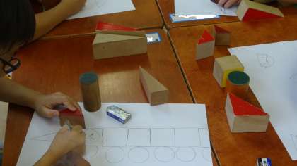 1組も同様に算数の学習です。思い思いに色々なものを想像して描いていました。