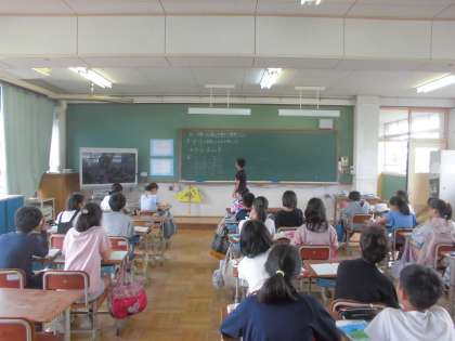 分数÷分数の学習をしています。今日は分数のわり算の計算の仕方を説明しあいました。