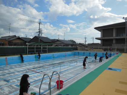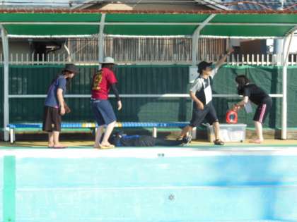 子ども達が頑張ってくれたおかげで,プールもとてもきれいになりました。最後に教職員で仕上げを行いました。そのあとには,もしもの時を想定して安全についての研修も行いました。もしもが起きないことが一番良いのですが,それでももしもを考え,想定しておくことも大切です。子ども達一人ひとりが安全に水泳学習ができるよう,おうちでもお声かけいただけるとありがたいです。
