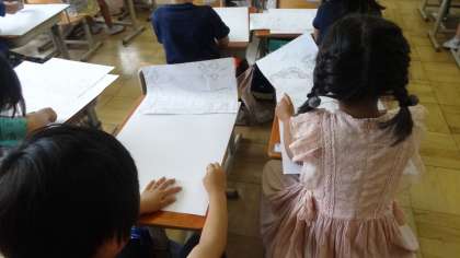 先日は動物図鑑などを見ながら動物を描く練習をしていましたが,今日は大きな画用紙に描いていきました。みんな大きな画用紙にダイナミックに描いていました。