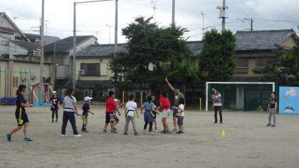 最初は楽しく体を動かすことから始まり,最後はタグを腰につけてゲームも楽しみました。ルールもわかりやすく教えていただき,みんなラグビーの魅力に触れることができたことだと思います。
