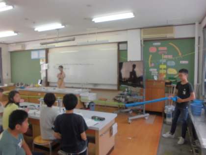 消化・吸収の仕組みについて学習しました。人体模型や内臓モデルを使って学習し,消化器官の長さに驚いている子どもがいました。