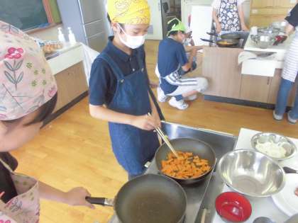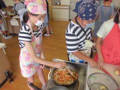 「ジャガイモの炒め物」で使用したジャガイモは,先日学校園で収穫したものです。自分たちで作ったものは格別の味だったようです。