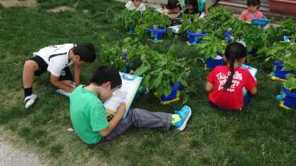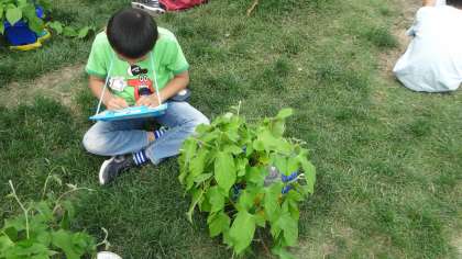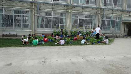 アサガオの観察です。つぼみがちらほらと見られるようになってきました。また,花が咲いたら教えてくださいね。