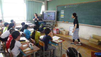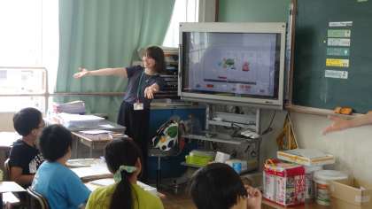 今日はALTの先生と一緒に学習です。いつも以上に盛り上がり,楽しく英語に慣れ親しむことができました。