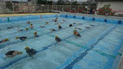 3年生も友だちとの教え合いや先生からのアドバイスで少しずつ泳力をつけてきました。自分の目標達成に向けて,次回も頑張りたいです。