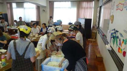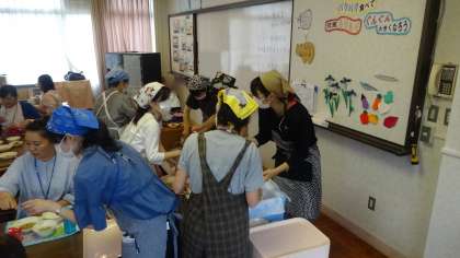 次は,保護者の方にも給食当番をしていただき,給食の準備を協力して進めていただきました。1年生の子どもたちも,楽しそうに眺めていました。