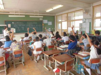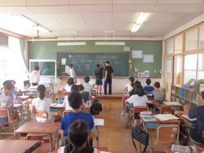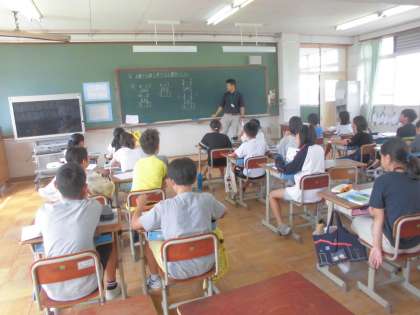 「比とその利用」の単元の学習をしています。1組は比を簡単にする学習を,2組は比から割合を求める学習をしました。子どもたちは集中して学習していました。