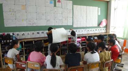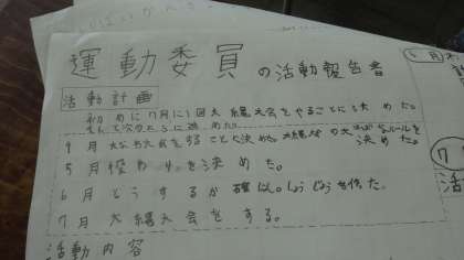 委員会活動についての活動報告書を,これまで模造紙にまとめてきました。今日はお互いに発表して,交流をしました。