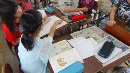 「新聞を作ろう」の学習です。先生たちにアンケートをとったりして,調査したことを新聞にまとめていきます。