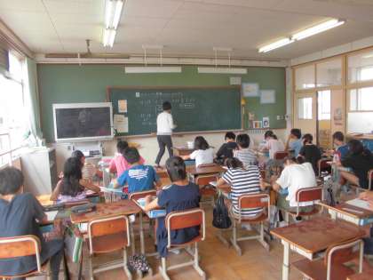 比を小さな整数の比にする学習をしました。比の両方の数を同じ数でかけたり割ったりするといいことがわかりました。