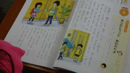 読み物資料「ありがとうって 言われたよ」を読んで,みんなで考えました。自分が考えたことは,道徳ノートに書きまとめていきます。友だちと意見を出し合いながら,優しさについてみんなで考えました。