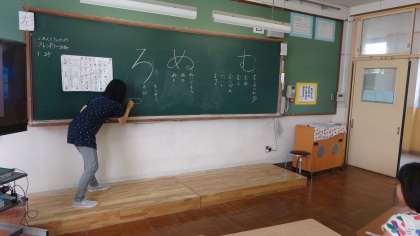 1年生はひらがなの学習です。今日は「む」「ぬ」「ろ」を学習しました。それぞれのひらがなでことば集めをしたり,書き順を確認したりしました。