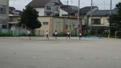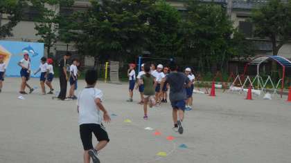 運動場で陸上部が練習を頑張りました。この暑い夏にどれだけ頑張ることができるかで,秋以降の結果につながります。4〜6年生のメンバーで一生懸命に取り組んでいました。