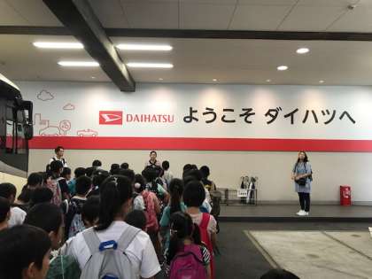 今日は5年生は社会見学です。午前中は自動車工場の見学です。みんな元気に到着しました。はじめに映像を見せてもらい、工場内での仕事について教えてもらいました。