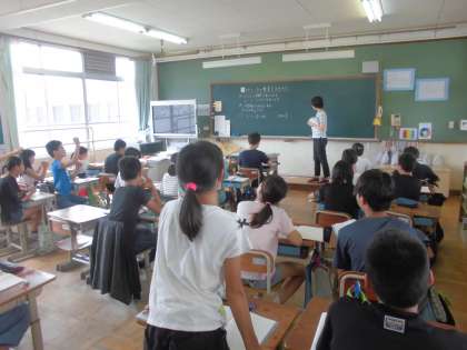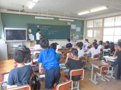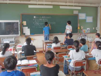「比の一方のあたいを求めよう」を学習しました。子どもたちは今まで学習したことを使って問題を解き,解き方を説明しあいました。