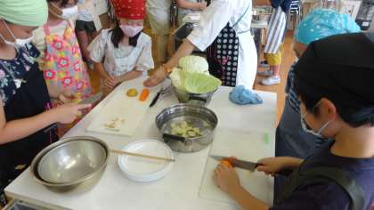 調理実習の日でした。ゆで野菜に挑戦です。包丁で野菜を切ったり皮をむいたりしましたが,初めての人もいるようで,緊張しながらの作業でした。またお家の方でもチャレンジしてほしいです。
