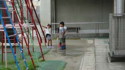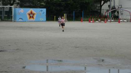 7月19日 雨上がりの運動場で