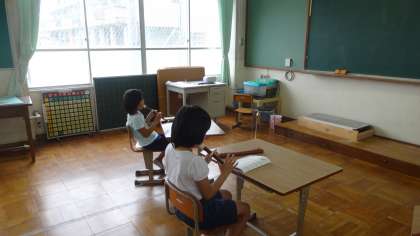 リコーダーの練習です。これまで練習してきたことを確かめながら,2人でリズムを合わせながら演奏しました。