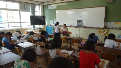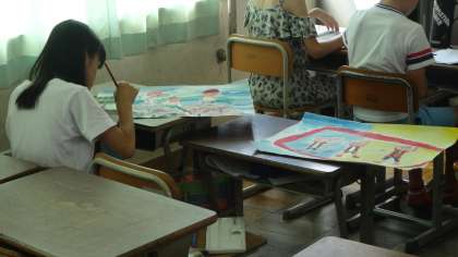 4年生のサマースクールの様子です。1学期に取り組んだ作品づくりの仕上げにも取り組みました。