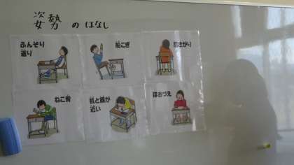 今日は4年生が身体計測でした。「いい姿勢」の話,4年生もいい姿勢でしっかり聞いていました。これからも,いい姿勢を心がけていきたいです。