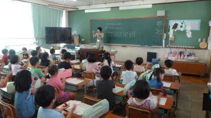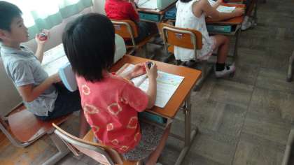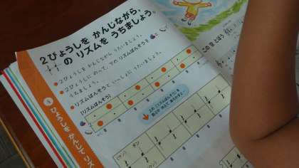 カスタネットなどの打楽器を使ってリズム打ちです。2拍子のリズムを感じながら,楽しく演奏していました。