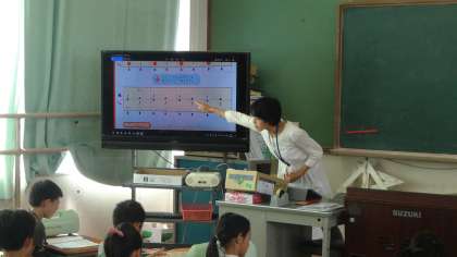 今日は,四分音符や四分休符の意味について,手をたたいたりしながら確認したり,書き方を確認したりしました。また,ドレミの歌を歌う時は,みんな大きな声で元気よく歌いました。