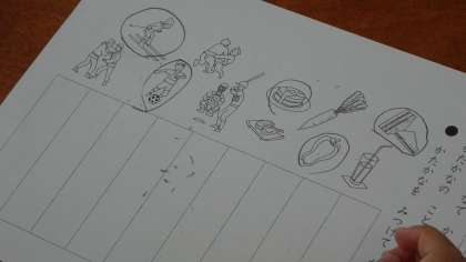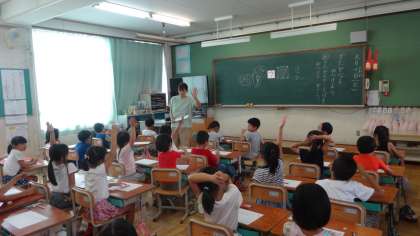 カタカナで書く言葉をみんなで見つけて,正しく書く練習です。暑さに負けず,1年生も頑張って学習に取り組んでいます。