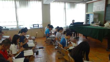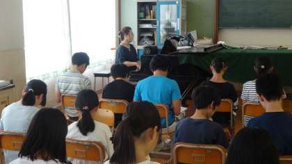 スクールサポーターの先生との学習です。ピアノ伴奏に合わせて,「雨のうた」をリコーダー演奏をしました。