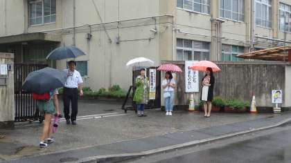 今日はあいさつ運動の日で,PTAの方々に正門や通用門,交差点等に立っていただき,子どもたちに声かけをしていただきました。いつも子どもたちをあたたかく見守っていただき,ありがとうございます。