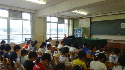 スクールサポーターの先生と一緒に学習です。ピアノ伴奏を聴いて曲想の違いを考えたり,リコーだ演奏を楽しんだりしました。